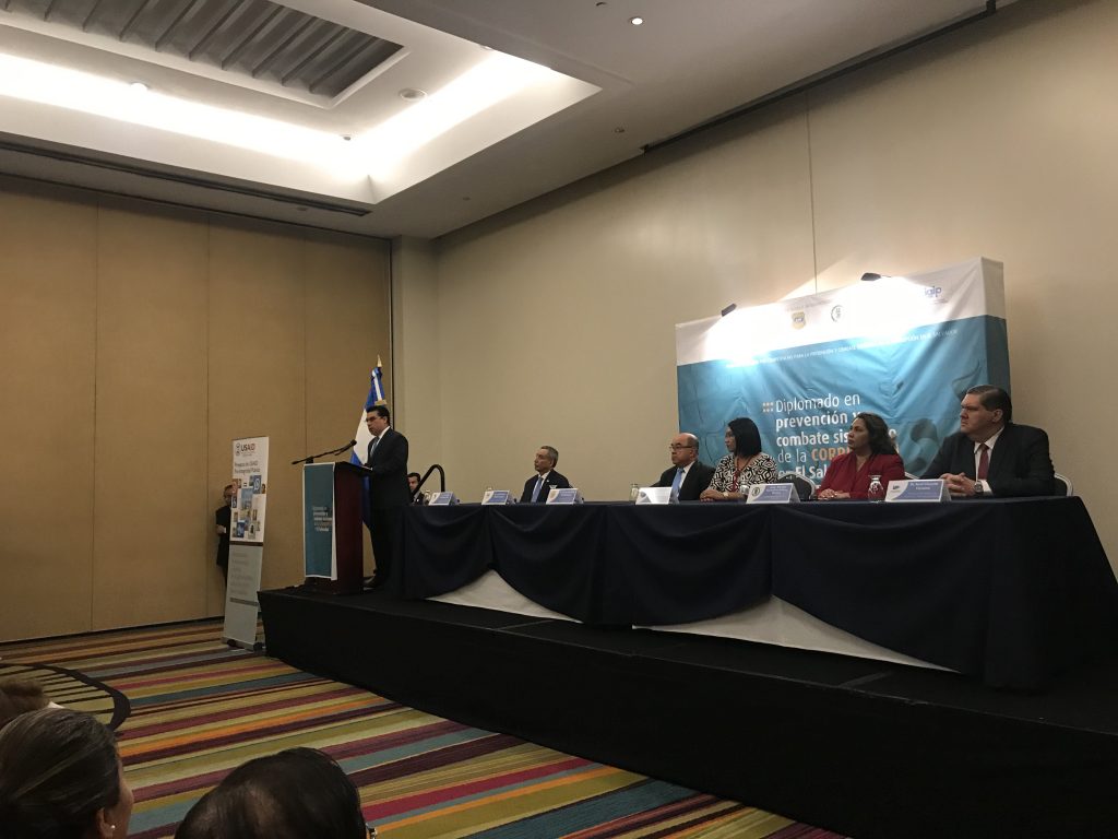 Este día, el Grupo de Trabajo Interinstitucional Anticorrupción (GTIAC) inauguró el Diplomado en Prevención y Combate Sistémico de la Corrupción en El Salvador, el cual consta de cinco módulos de formación de 20 horas cada uno y será impartido entre los meses de octubre 2019 a marzo 2020 con el apoyo del Proyecto de USAID Pro-Integridad Pública.