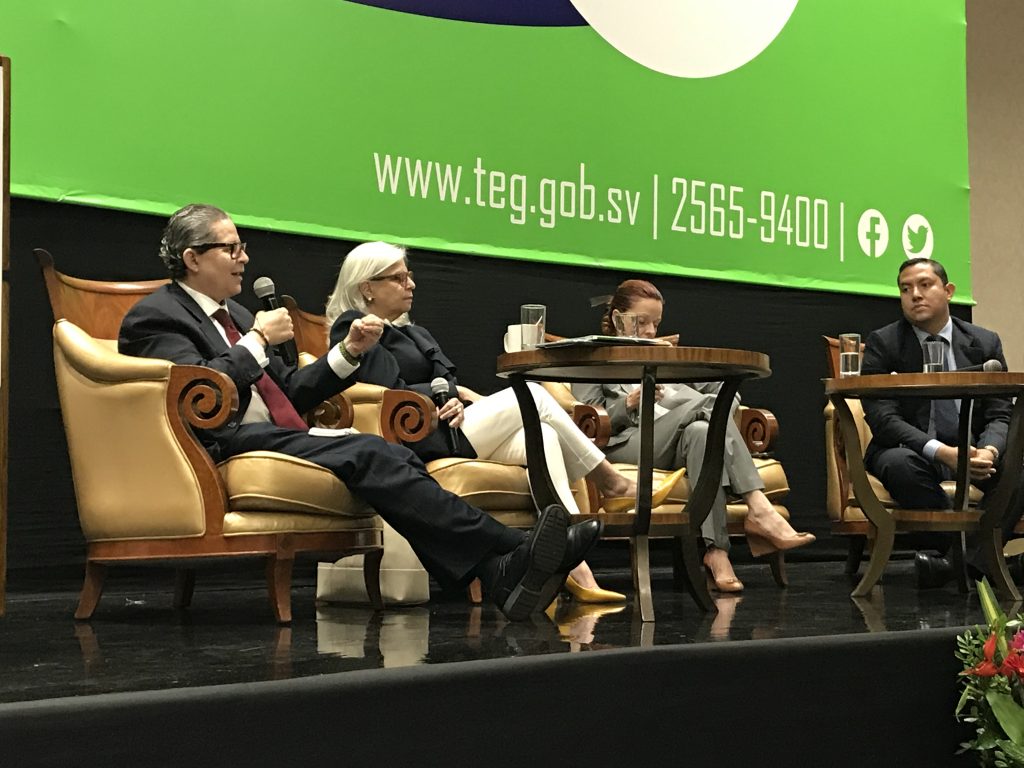 Para concluir la jornada, se realizó el conversatorio denominado “Fortalecimiento de Prácticas Éticas en el Sector Público” con la participación del Dr. Enrique Sorto Campbell, rector de la Universidad José Matías Delgado (UJMD), la Licda. Lizette Kuri, Sub directora del proyecto USAID Fortalecimiento del Sector Justicia y el Lic. Roberto Antonio Morán, coordinador del Observatorio de Políticas Públicas de la Universidad Francisco Gavidia. El evento fue moderado por la Dra. Liliam Arritea de Carsana.