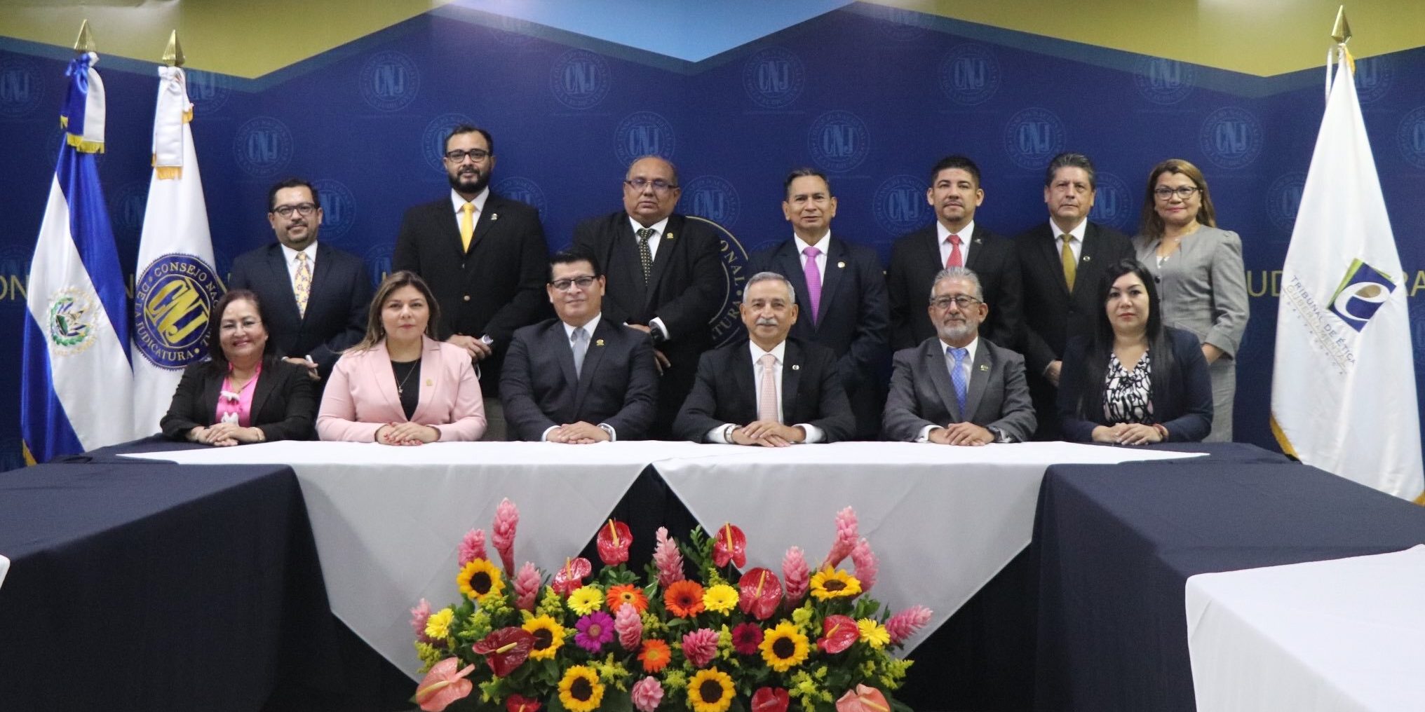 La firma de la carta de entendimiento se realizó a través de los titulares de cada institución: el Dr. José Nestor Castaneda, Presidente del TEG y el Lic. Miguel Calero, Presidente del CNJ, acompañados de quienes integran los cuerpos colegiados de cada institución.